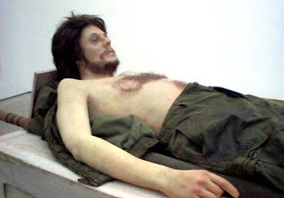 Gavin Turk (1967-) Nasceu na Inglaterra. Estudou no Royal College of Art, Londres. A Maioria dos seus trabalhos envolve a sua própria imagem substituindo diferentes personagens famosas. Aqui ele se apropriou da famosa foto de Guevara morto conseguida por Korda na Bolívia e fotografou-se na mesma posição. The Che Guevara Story. (2001), Coleção particular.
